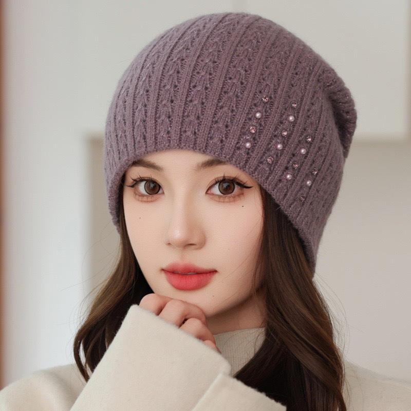 Вязаная шапка с кроликом Цзяи, детская зимняя теплая толстовка с капюшоном для мам среднего возраста, пожилая, универсальная, корейская версия, вязаная шапка One size (50-60cm)