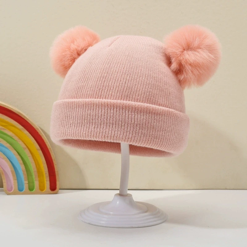 Вязаная шапка с меховыми шариками для детей от 0 до 3 лет, зимняя шапка для новорожденных, милый шарик с помпоном, вязаный чепчик для маленьких девочек и мальчиков, теплые шапки Gorro