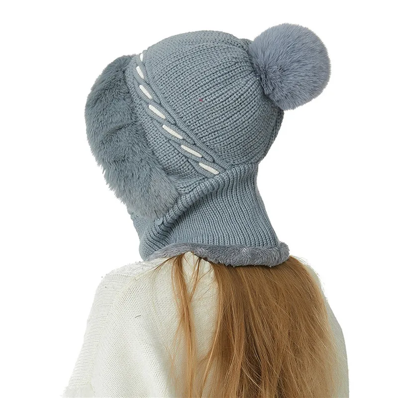 Вязаная шапка с помпоном, плюшевая защита ушей, однотонная осенне-зимняя женская Обложка для лица, Шейная Шапка-бини для лыж