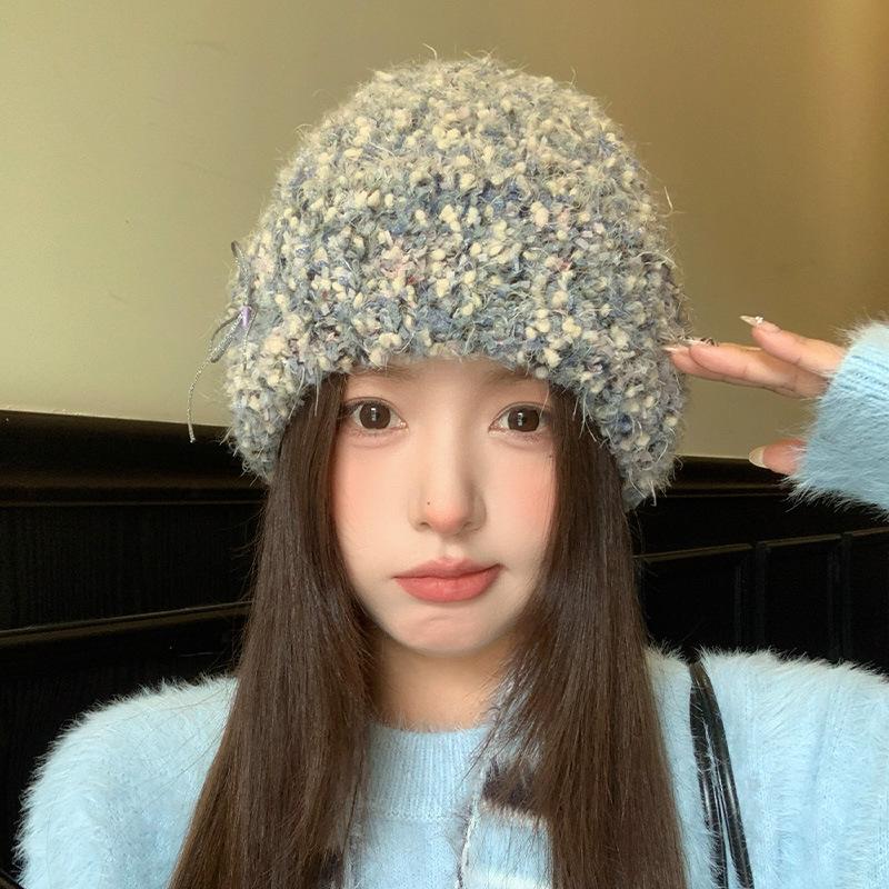 Вязаная шерстяная шапка большого размера для женщин, осенне-зимняя, для защиты от холода и защиты ушей, ретро, шапка, подчеркивающая лицо, новый стиль M(56-58cm)