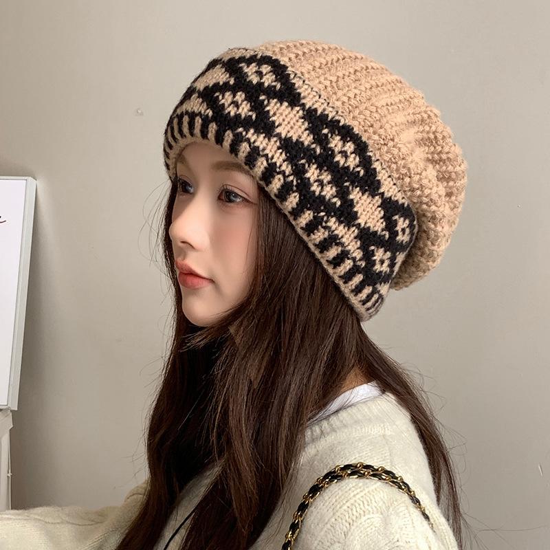 Вязаная шерстяная шапка для женщин Зима Корейский стиль Большой обхват головы Теплая шапка-бини Защита от холода Скрывающая лицо Маленькая холодная шапка Модная M(56-58cm)