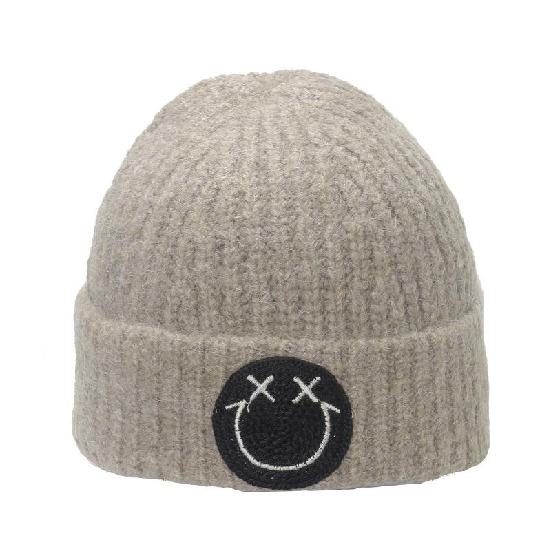 Вязаная шерстяная шапка с улыбающимся лицом женская осенне-зимняя утолщенная теплая шапка-пуловер для велоспорта, для большой окружности головы, шапка-пуловер, свободная холодная шапка женская M(56-58cm) хаки