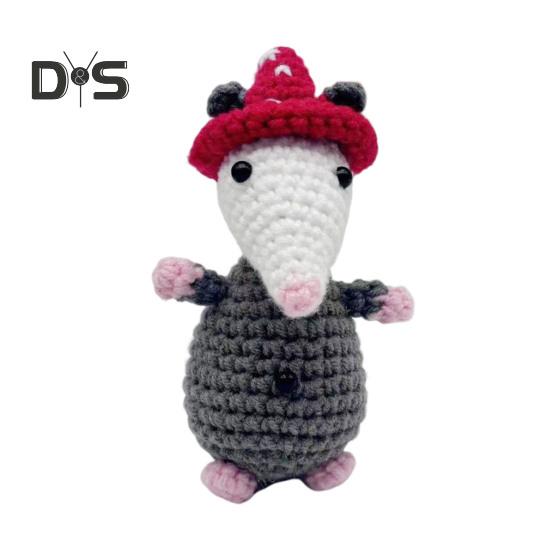 Вязание крючком Опоссум Украшение ручной работы Вязание Красная шляпа Мышь Домашний офис Настольный автомобиль Украшение Плюшевая кукла-животное Игрушка Фестиваль Подарок Rat