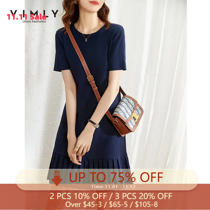 Вязаное платье VIMLY для женщин, лето 2021, о-образный вырез, тонкая талия, элегантное Плиссированное трикотажное ТРАПЕЦИЕВИДНОЕ мини-платье, же...