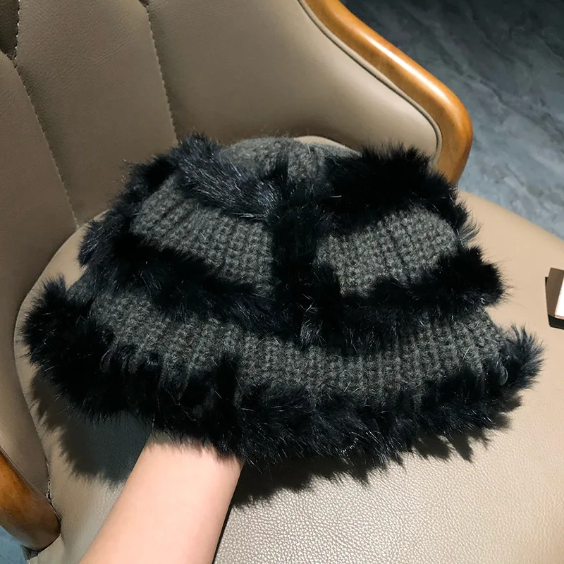 Вязаные Панамы из кроличьего меха для женщин и девочек, модные пушистые меховые шерстяные шапки Y2K, зимняя теплая плотная плюшевая шапка для бассейна, Рыбацкая шапка