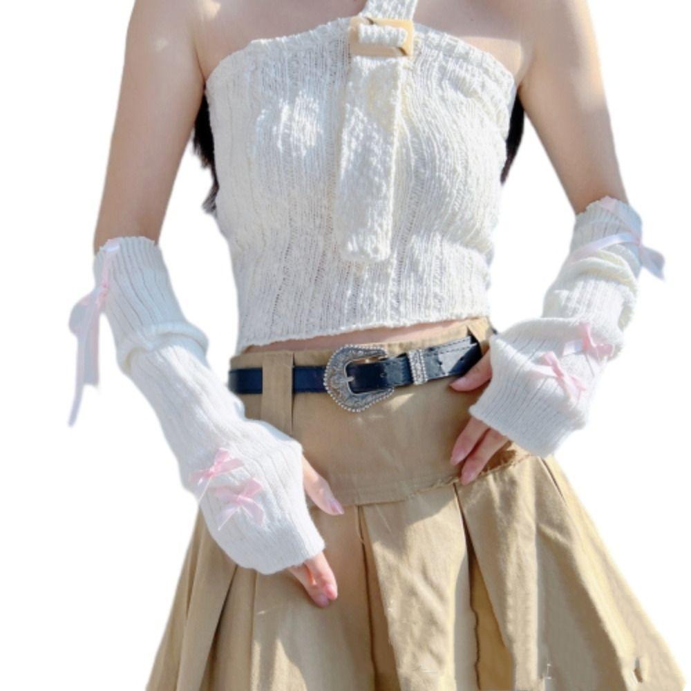 Вязаные нарукавники с бантом в балетном стиле, эластичные длинные перчатки без пальцев, защита для рук, грелки для рук, для девочек