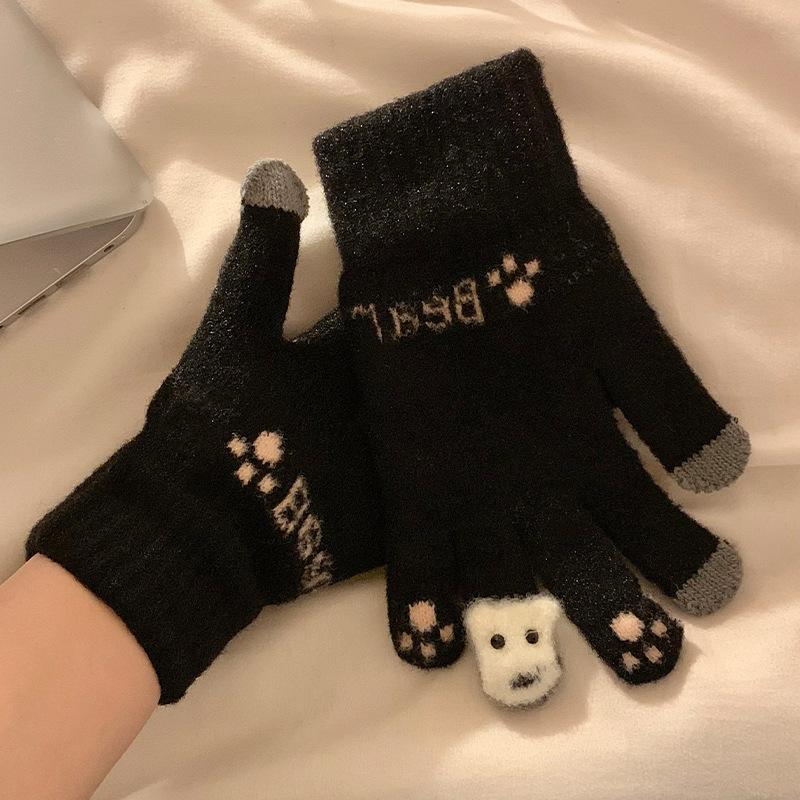 Вязаные перчатки Милая корейская версия Осень и зима Студенты могут пользоваться сенсорным экраном Плюшевые перчатки Сохраняют тепло и более плотные В велосипеде