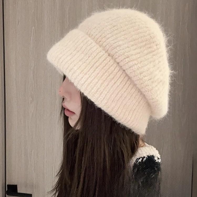 Вязаные плюшевые и утолщенные шапки для женщин на осень и зиму, с защитой ушей и теплые, маленькая шерстяная шапка, подчеркивающая лицо M(56-58cm)