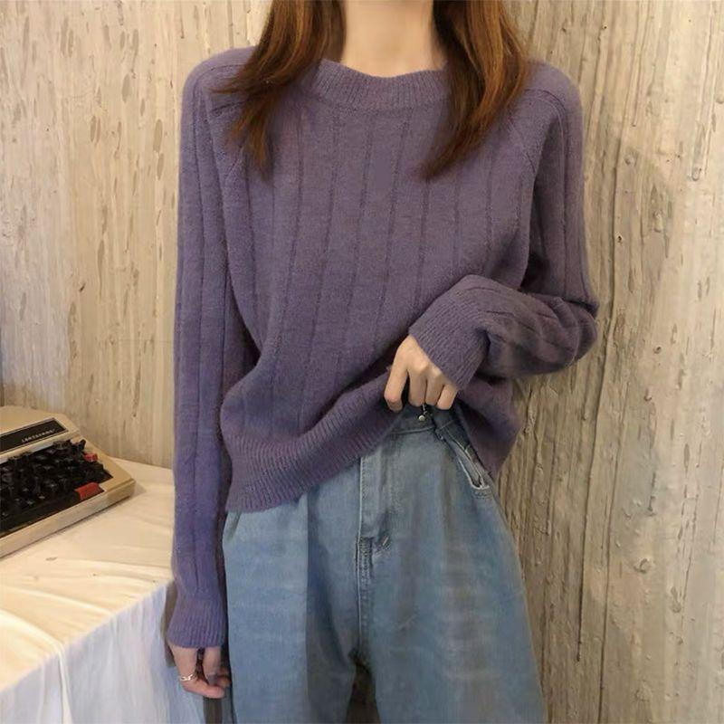 Вязаные свитера в стиле колледжа, свободные пуловеры для женщин и полосатые свитера с круглым вырезом, модные для осени и зимы one size