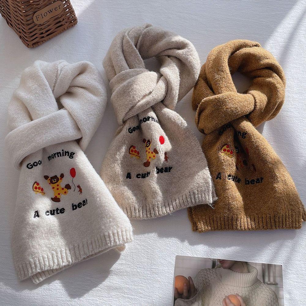 Вязаные шарфы с вышитыми буквами, вышитый медведь, шаль с маленьким медвежонком, шерстяной шарф в стиле ретро для женщин/мужчин