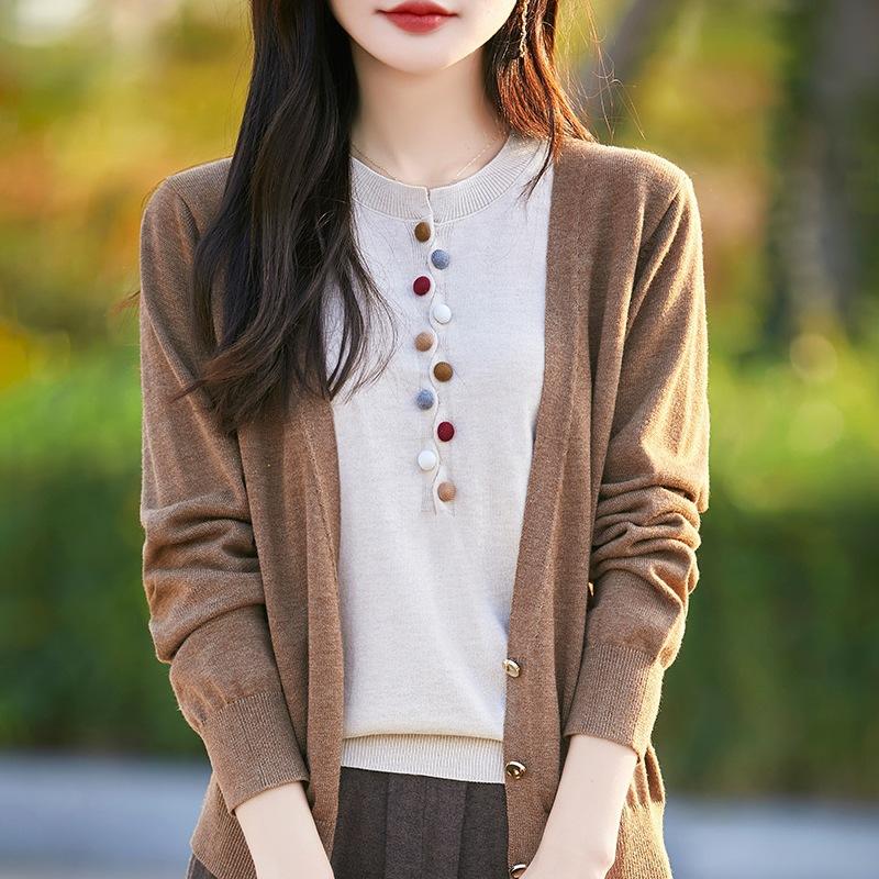 Вязаный свитер с круглым вырезом, имитация двойки, новая весенне-осенняя коллекция, вязаный свитер-пальто с длинными рукавами M