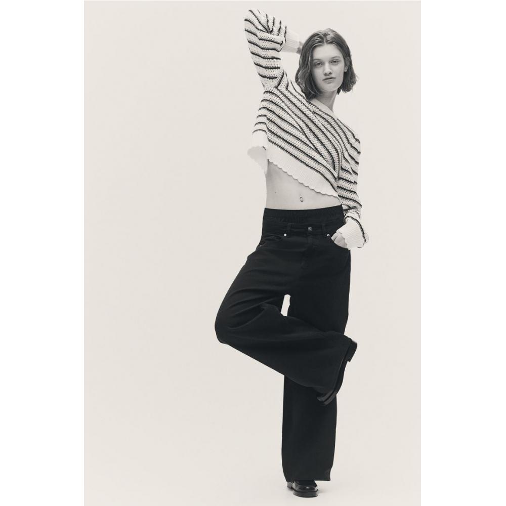 Вязаный свитер HM с открытой спиной, белая и черная полоска
