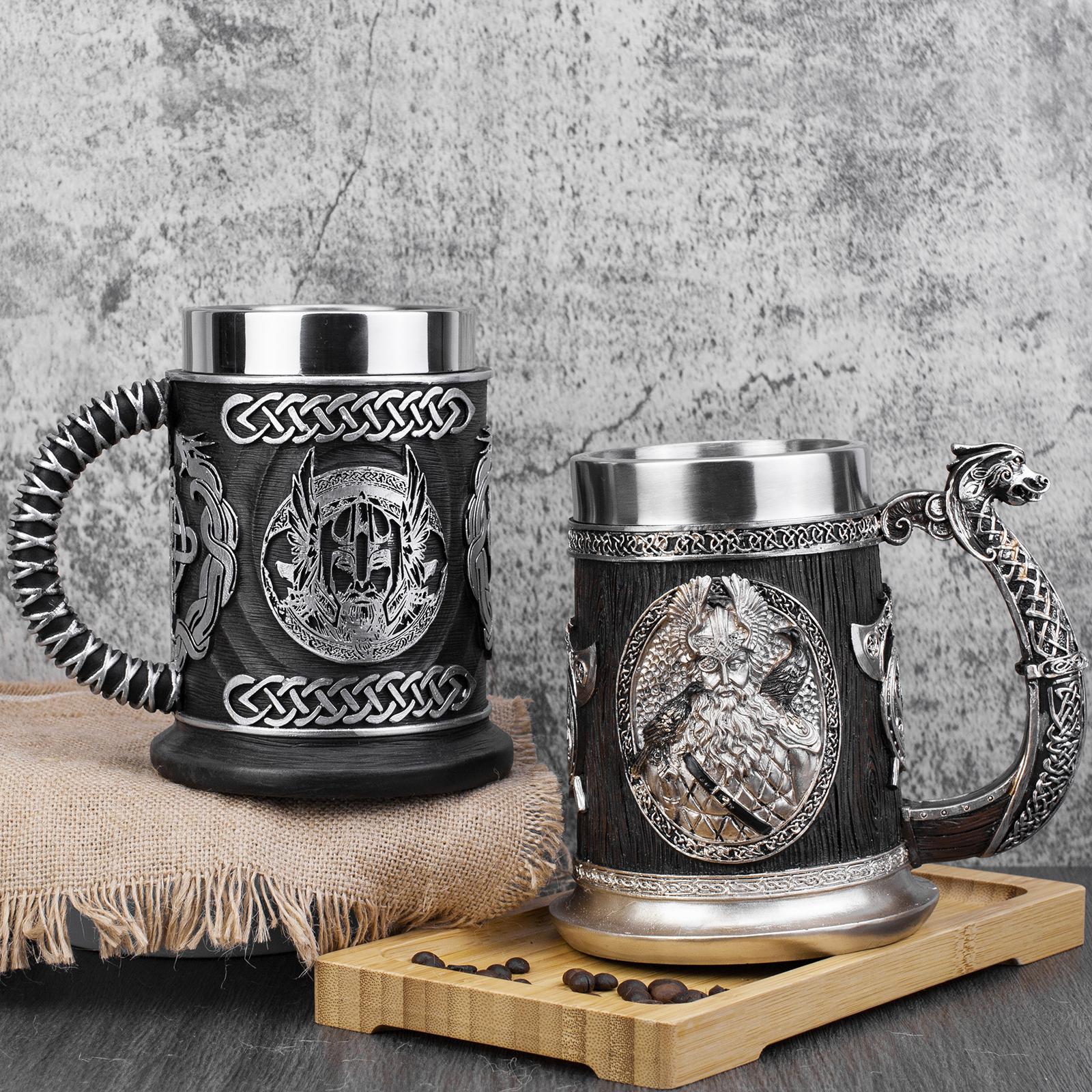 Вікінг Тор і Одін Важка чашка з нержавіючої сталі та смоли Чашка для кави Готичний декор Прикраса для вечірки Посуд для напоїв Подарунок 501-650ml