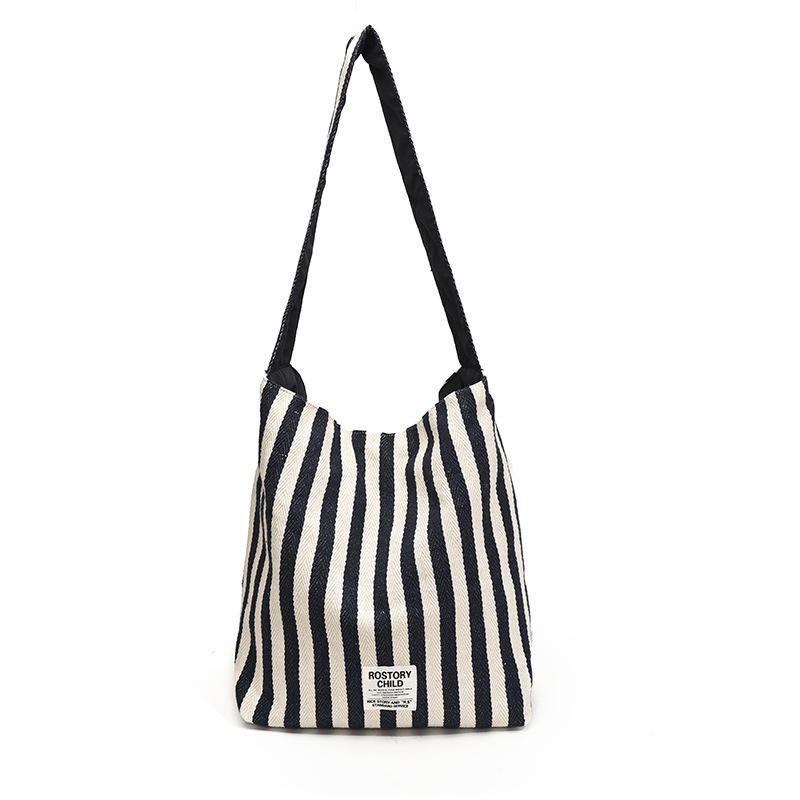В этом году популярная женская холщовая сумка большой вместимости 2024 года, повседневная сумка через плечо в полоску, сумка-ведро для поездок на работу синий