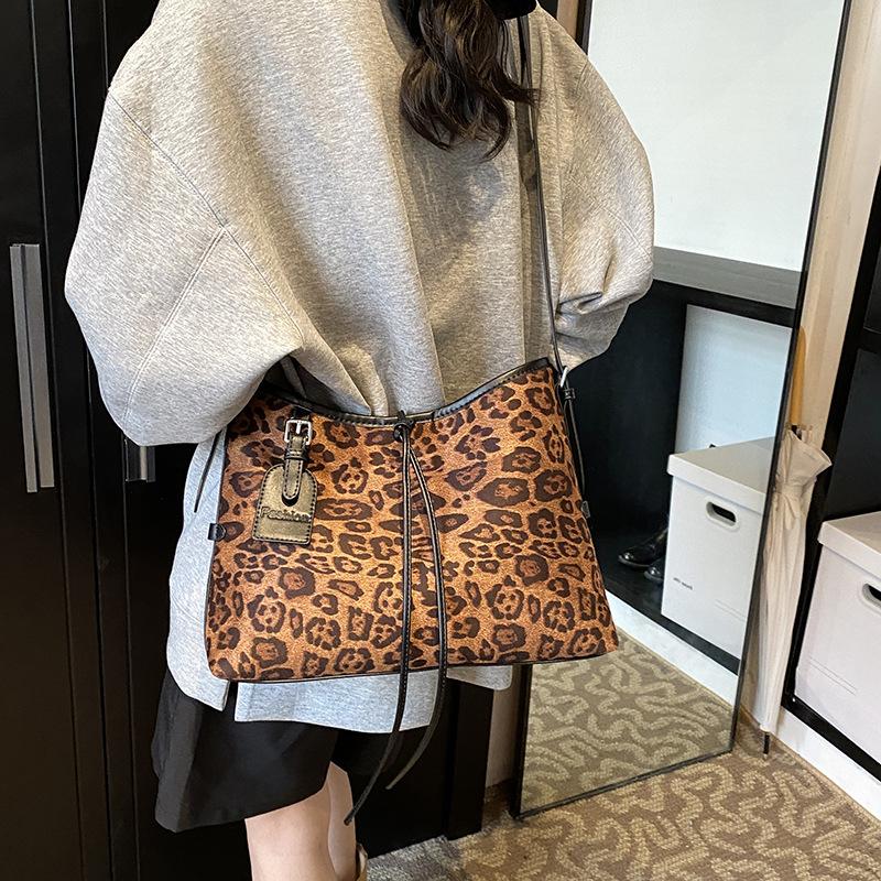 В этом году популярная маленькая сумка с леопардовым принтом женская 2025 новая модная ретро сумка-мессенджер осенне-зимняя сумка-тоут для поездок на работу 34*10.5*26 коричневый