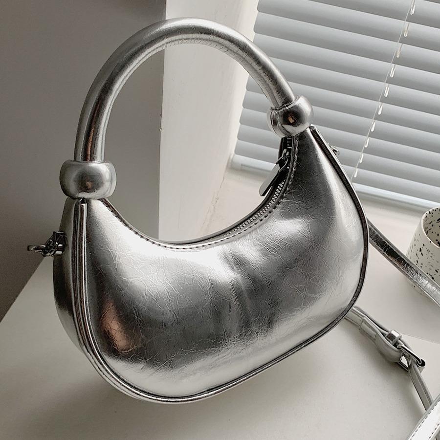 В этом году суперпопулярными стали серебристые небольшие сумки для переноски, которые пользуются большой популярностью среди элитных сумок-мессенджеров из натуральной кожи с полумесяцем, сумок для мобильных телефонов. серебряный