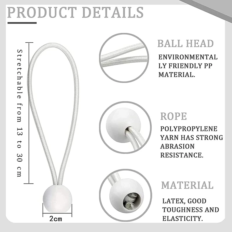 ГОРЯЧАЯ ПРОДАЖА, 100 шт., банджи-шнур с шариками, эластичные завязки, банджи-переключатели, завязки для шатров, палаток, флагштоков, запека (белый)