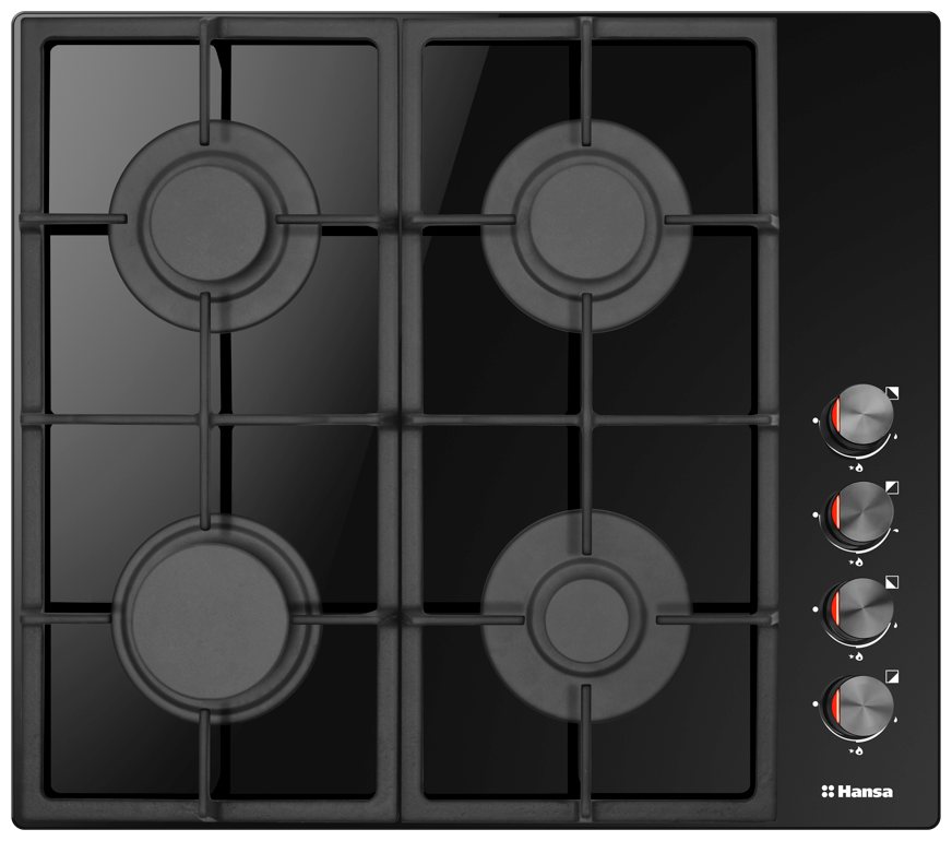 Газовая варочная панель HANSA BHKS620531 4 конфорки, черный (21101 ), Черная, BHKS620531
