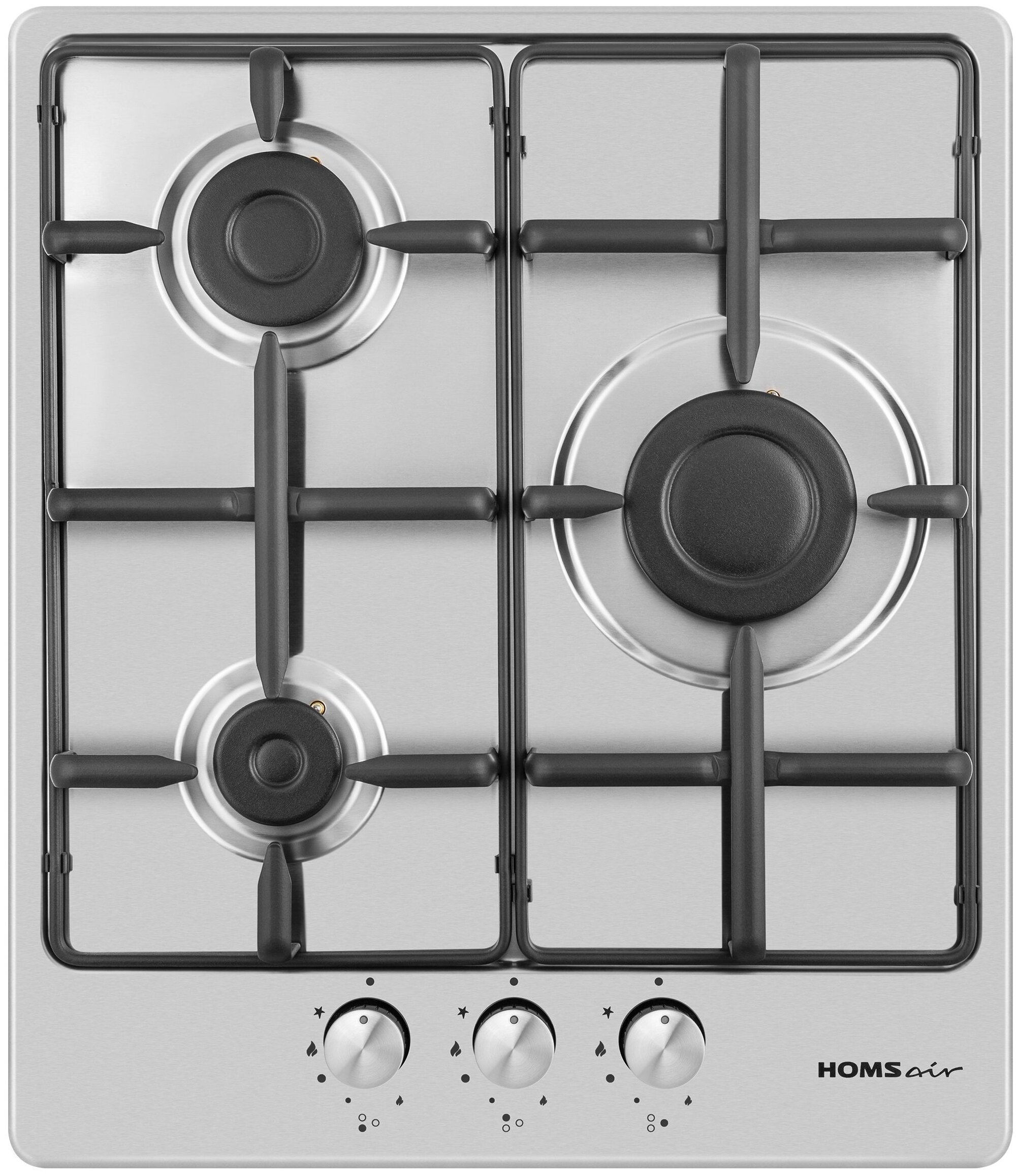 Газовая варочная панель HOMSAir HGS433GS 3 конфорки, серебристая (HGS433GS), HGS433GS