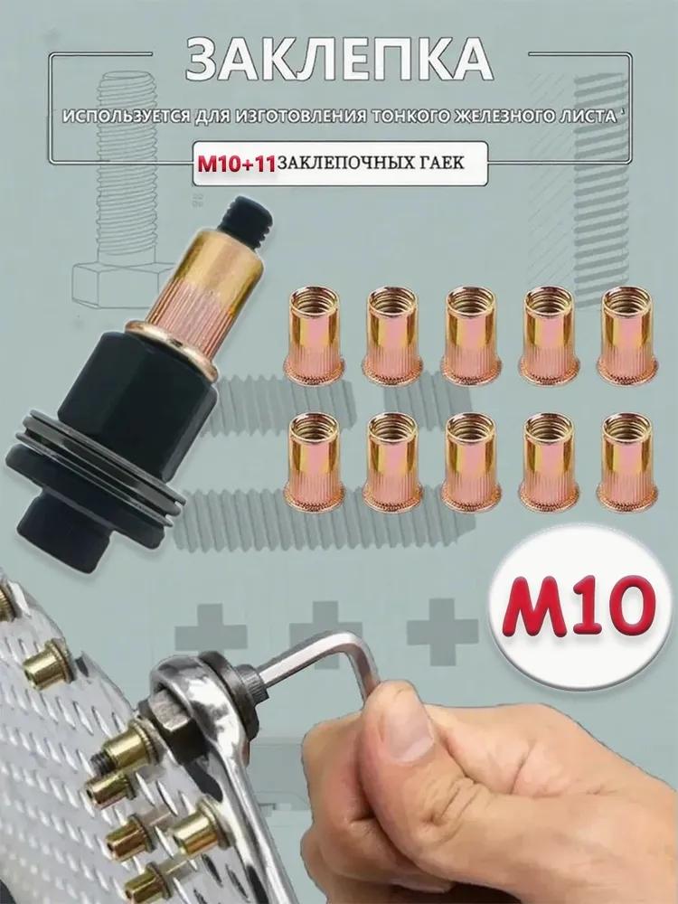 Гайки-заклепки с резьбой M10, 10 шт., углеродистая сталь, высокая прочность, стандартный размер, для автомобилей, строительства One Size