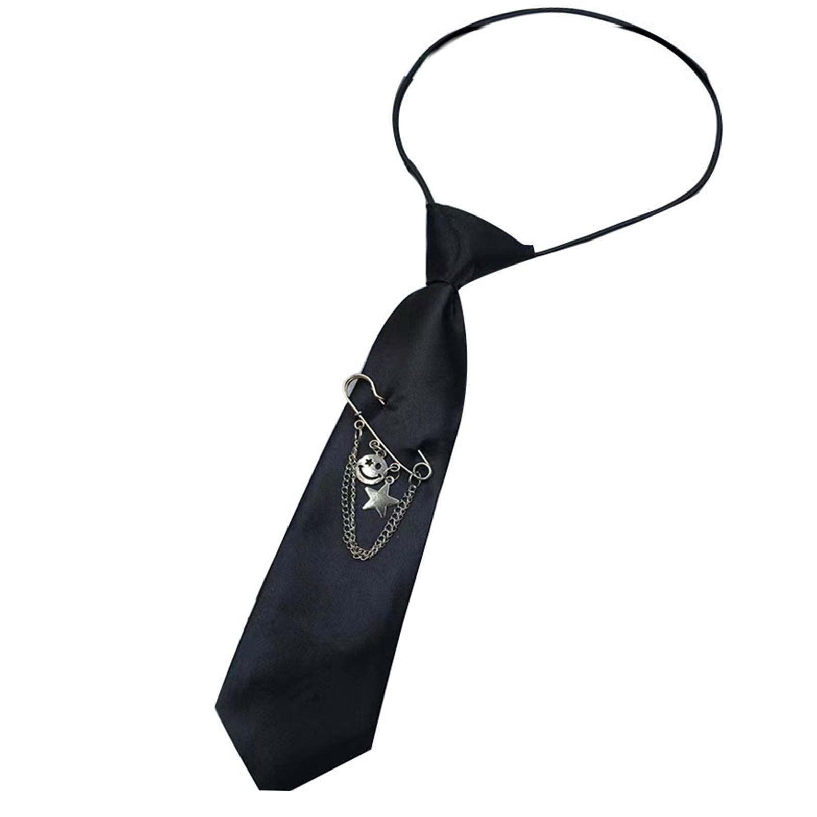 Галстук для школы в стиле преппи с металлической булавкой в виде улыбающегося лица, винтажный предварительно завязанный галстук, шейный платок для взрослых и детей, школьная форма чёрный