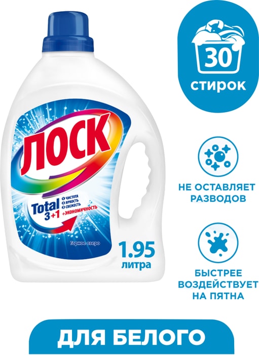 Гель для стирки ЛОСК Горное Озеро для белого белья, 1.95 л, 30 стирок