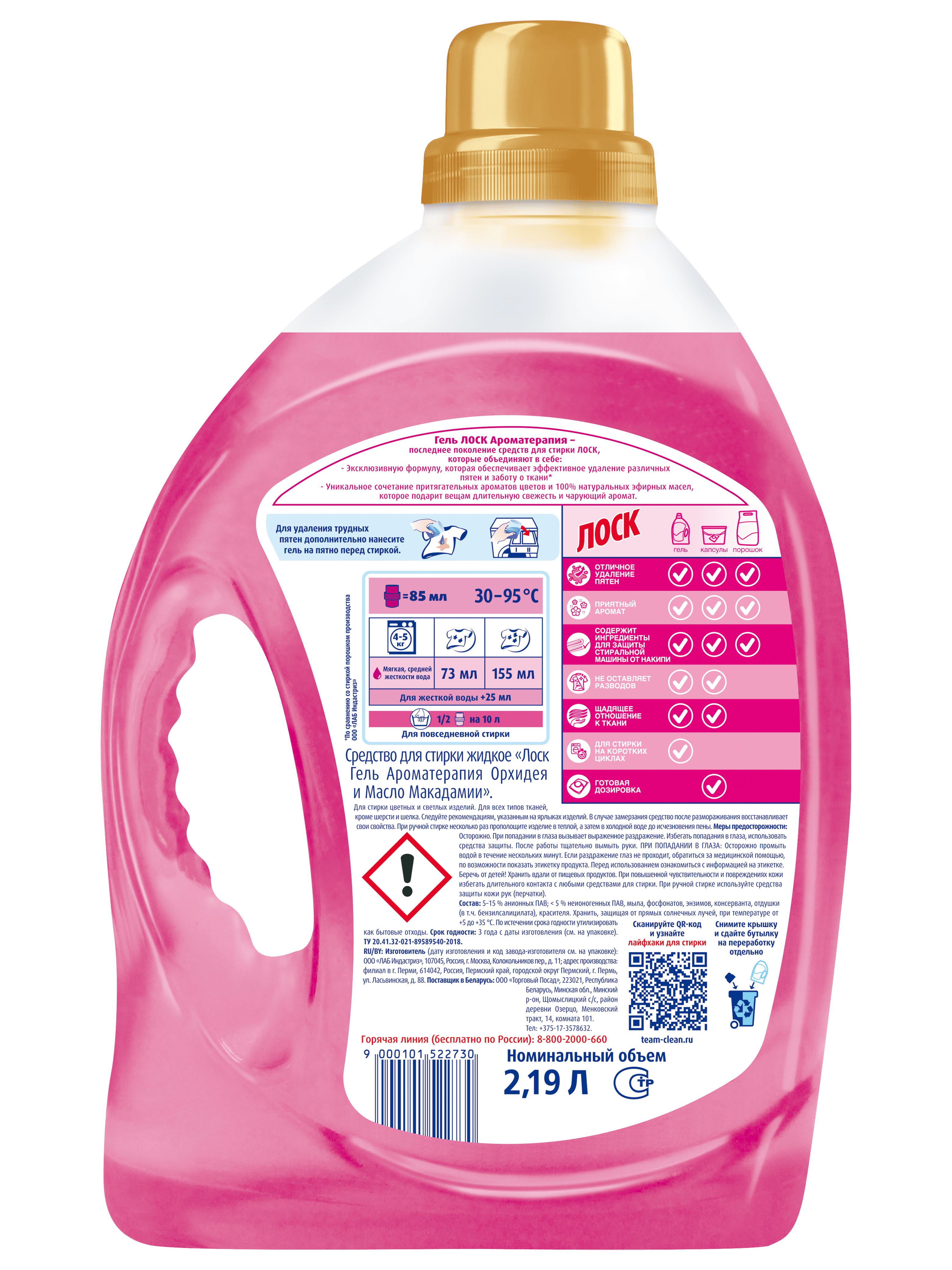 Гель для стирки Лоск Ароматерапия Орхидея и Масло Макадамии для цветного и белого белья, 2.19 л, 30 стирок