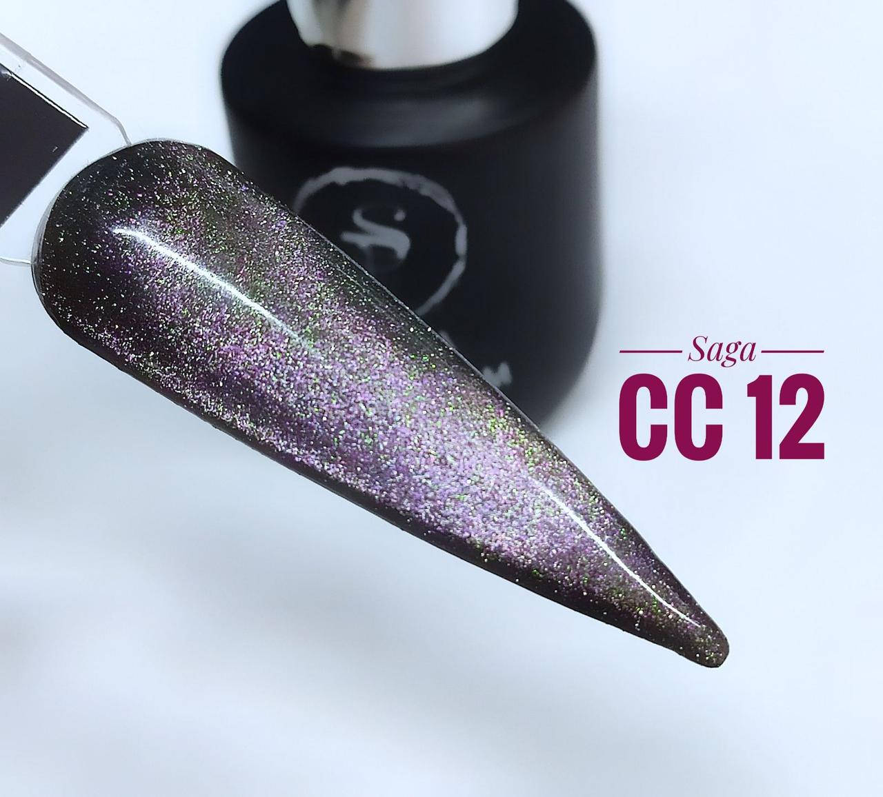 Гель лак кошачий глаз светоотражающий СС12 ТМ "SAGA" розово - кремовый хамелеон 8 мл
