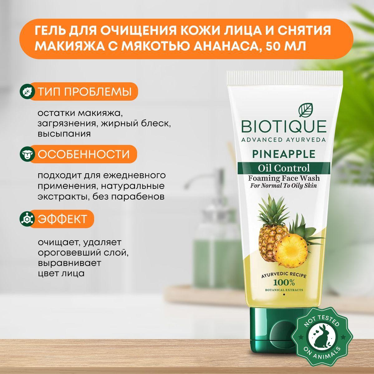 Гель (умывалка) для очищения кожи лица и снятия макияжа с мякотью ананаса Biotique (Биотик), 50мл
