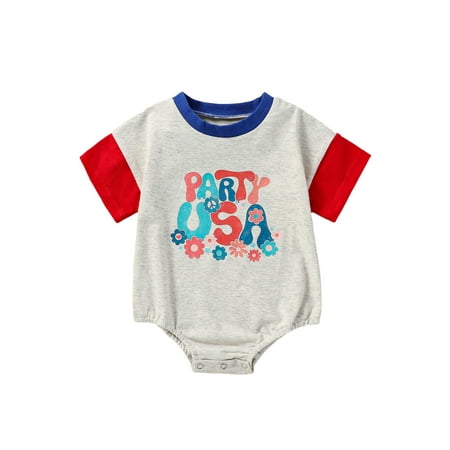 Wassery 4th of July Unisex Baby Bodysuit Outfit USA Letter Bubble Romper One Piece Jumpsuit 0 6 12 18 24 Months Infant Independence Day Clothes 0-24M