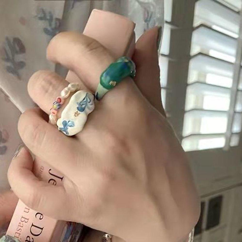 Геометрические украшения для пальцев с каплями глазури для женщин Открытое кольцо в корейском стиле Капельное масляное кольцо Кольцо на указательный палец #4