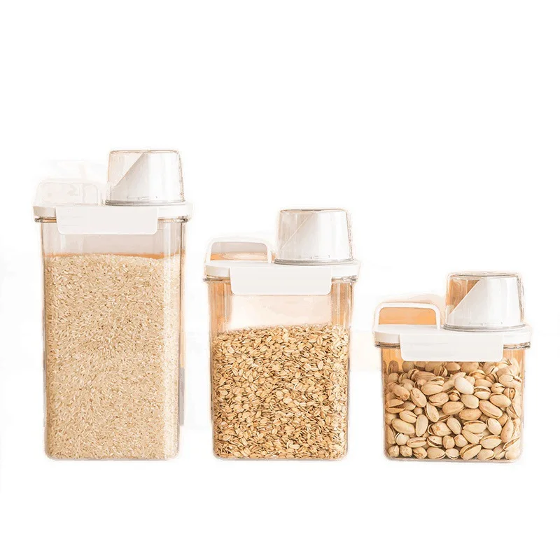 Герметичная зернистая коробка для хранения, прозрачная банка для риса с мерной чашкой, ручная влагостойкая емкость, емкость