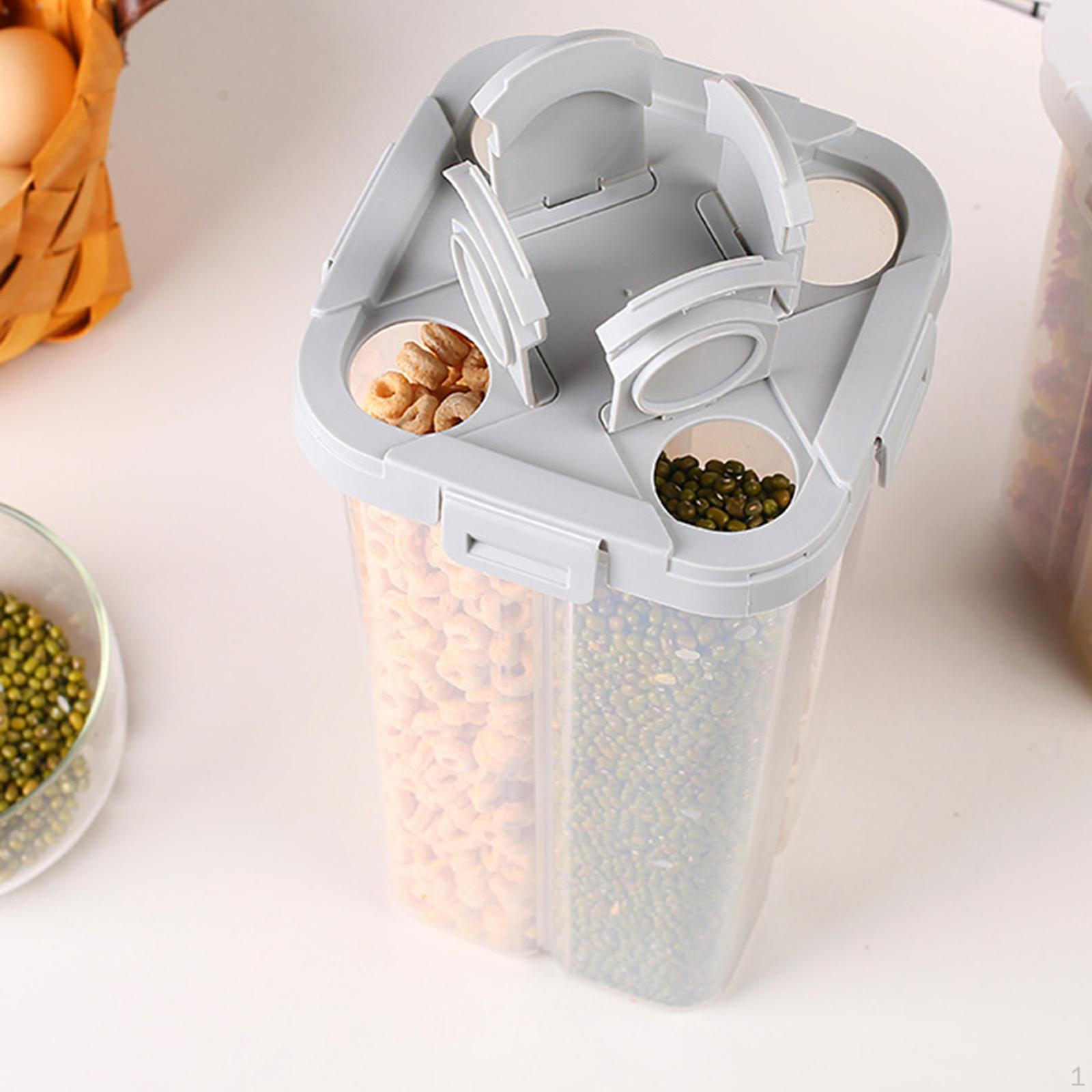 Герметичный прозрачный контейнер для хранения хлопьев с крышками и отделениями серый
