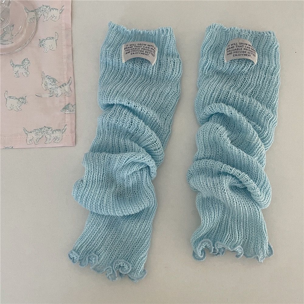 Гетры-гольфы Dopamine Label Весна Лето Тонкий стиль Серые гольфы до икры Женские Корейская версия Ажурные Однотонные Рукава для ног синий