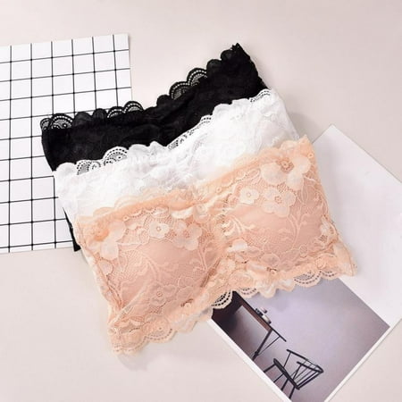 Yinrunx Bandeau Top Tube Tops Plus Size Strapless Bra White Bandeau Bra Strapless Tops for Women Lace Camisole for Women Strapless Bra for Big Busted Women Black Tube Top White Bralettes for Women