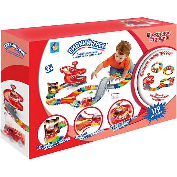 Гибкий трек 1toy "Пожарная станция" разворот, ворота, 1 машинка, 113 деталей, Разноцветный