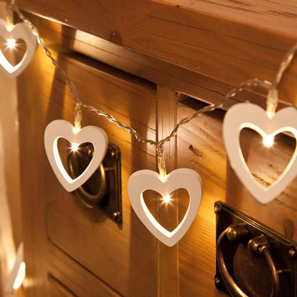 Гирлянда в форме сердца для помещений и улицы, Декоративная елка, деревянная Ночная лампа, бар, спальня, праздничное освещение елки