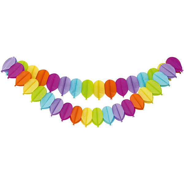 В центре гирлянды протянута нить, с помощью которой украшение можно растягивать и вешать, а потом снова складывать в изначальное положение.
