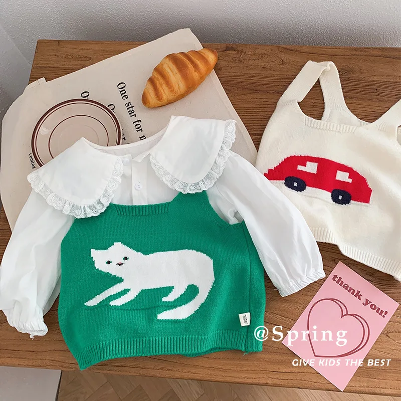 Детский жилет с героями мультфильмов, весенний трикотажный жаккардовый жилет на лямках для девочек, детский жаккардовый жилет для малышей