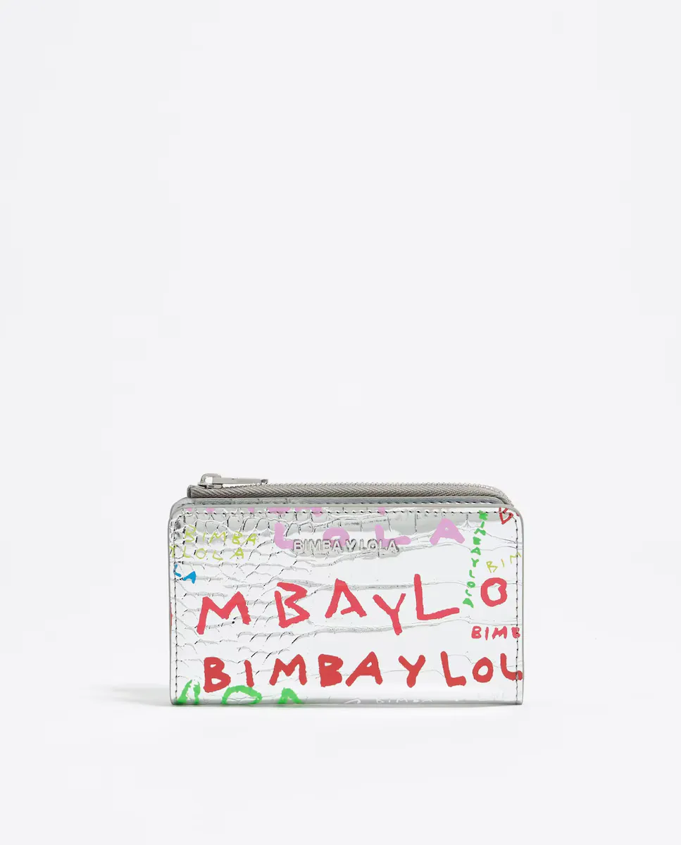Женский кошелек с крокодилом и гравировкой логотипа Bimba y Lola, серебряный