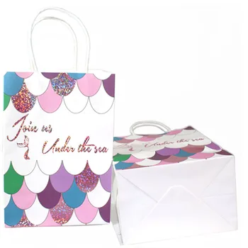 12pcs Mermaid Party Gift Bag With Handles Creative Wedding Party Birthday Supplies Tote Bag Gift Packaging Paper Bag
