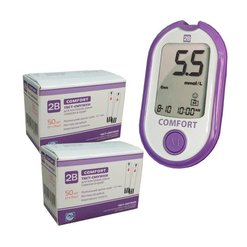 Акционный комплект 2B COMFORT: глюкометр в наборе с тест-полосками 100 штук!