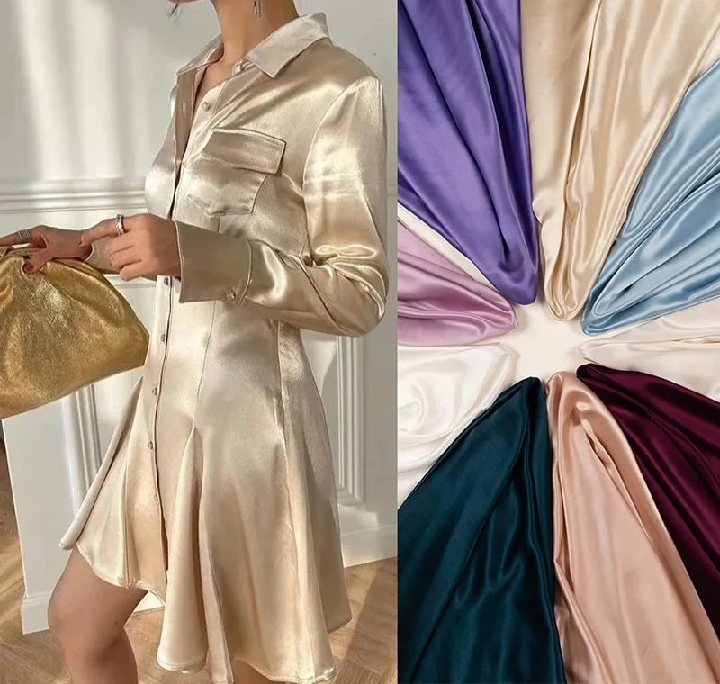 Глянцевая ацетатная атласная шелковая гладкая и слегка эластичная ткань, пришитая для женских модных платьев, вечерних платьев, платьев с бретельками на шее