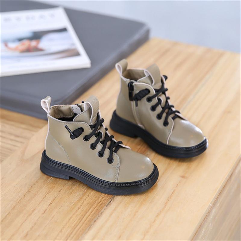 Boots 2021 Children Genuine Leather Toddler Boys Girls Soft Sole Waterproof Fashion Little Kids Ankle, Black;grey