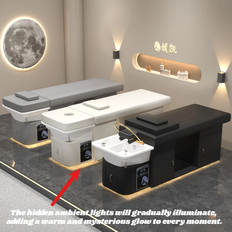 Голова Спа Атмосфера Лампа Терапия волос Шампунь Стулья Циркуляция воды Фумигация Цвет Cust. Высококачественная кровать с шампунем Camila