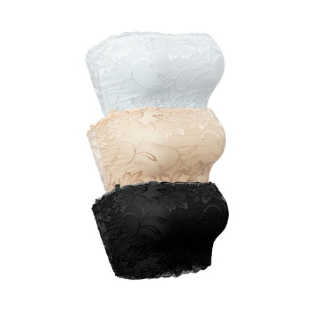 3 Pack Floral Lace Bandeau Bralettes for Women Tube Top Bra Stretchy Strapless Bandeau