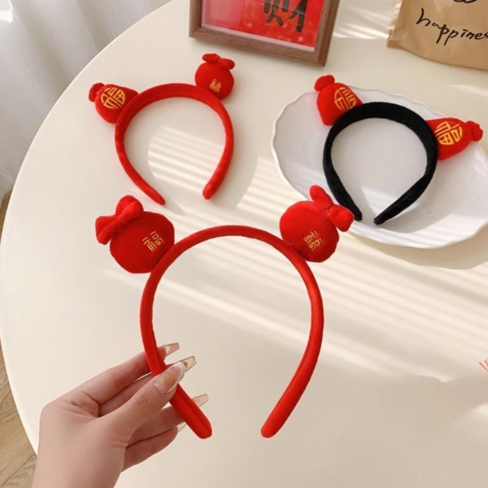 Головные уборы для мытья лица, пучки волос, сумка для благословения, плюшевая повязка на голову, милый красный счастливый мешок, обруч для волос