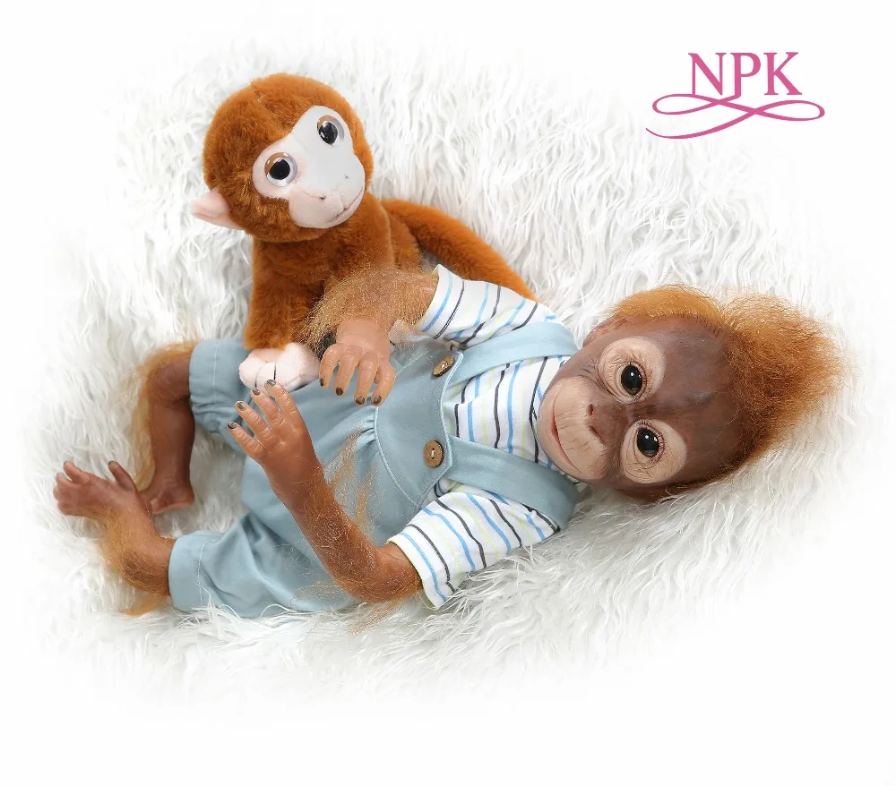 NPK New 21inch 52CM 100% handmade reborn Monkey very soft silicone vinyl flexible Collectible art doll