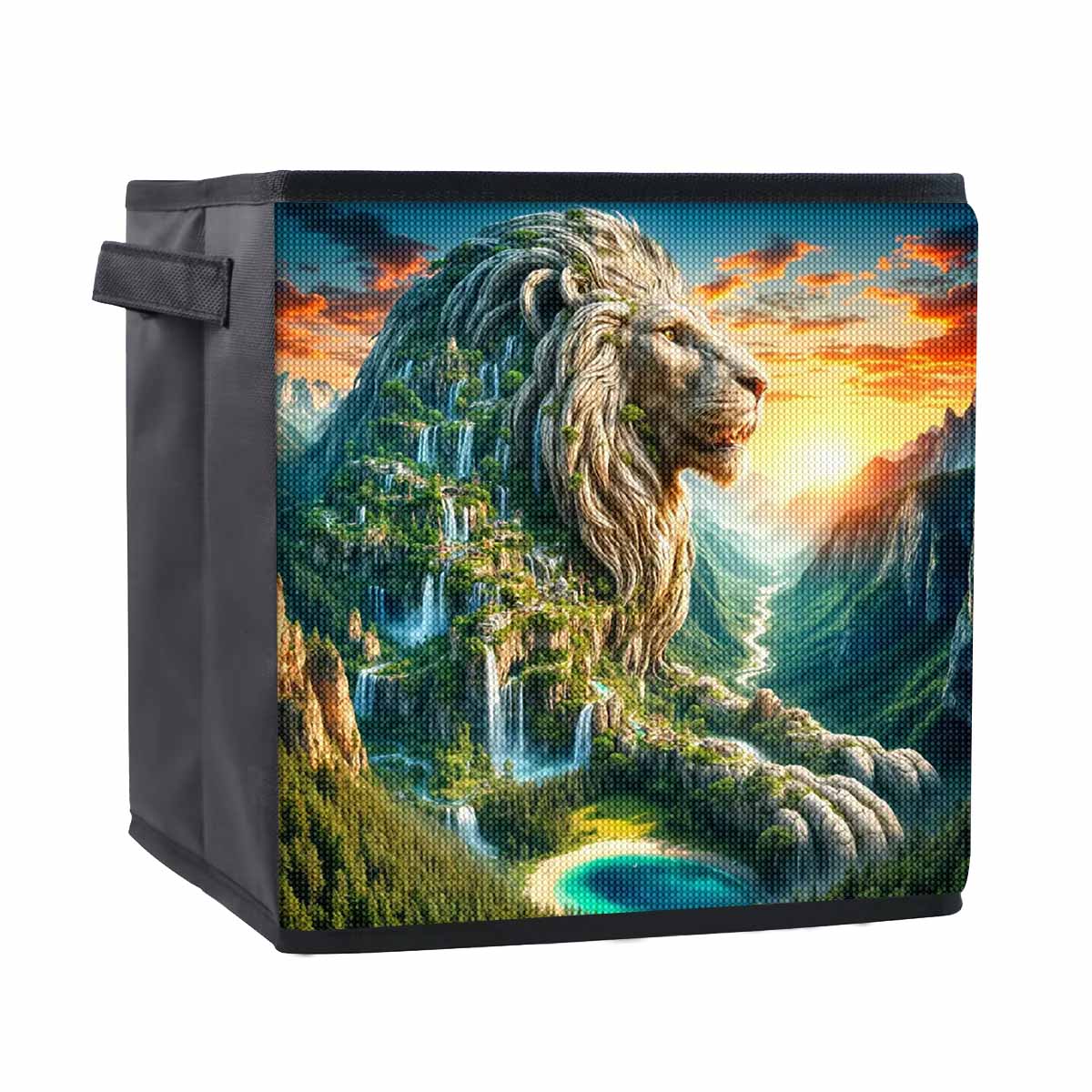 Гора Каменного Льва 5D Алмазная Живопись Корзина для Хранения Полная Круглая Выкладка Мозаика Алмазная Вышивка Наборы для Вышивания Крестом Домашний Декор Домашний Декор 25cmx25cm