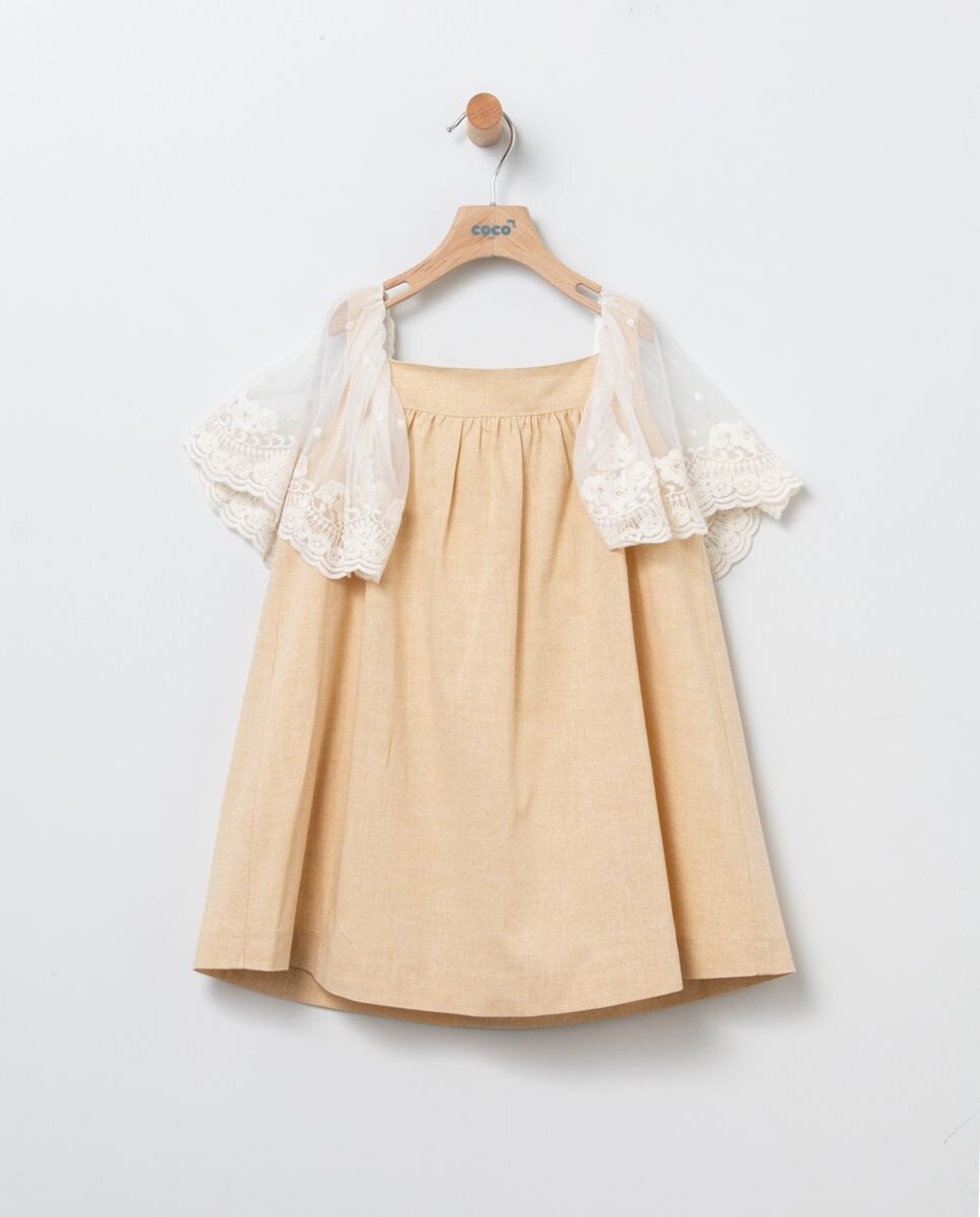 Горчичное платье для девочки с рюшами на рукавах Coco Acqua, горчичный, Желтый, Горчичное платье для девочки с рюшами на рукавах Coco Acqua, горчичный